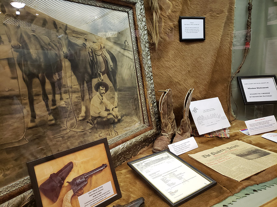 The “Hindsight is 20/20” exhibit chronicles Dr. Reed’s life alongside a display of pharmacy items, including pill bottles and medicines. The section of the exhibit dedicated to Dr. Reed is just one of 20 collections being showcased through March 20. With the start of 2020, Laure Sinn and Holly Counts said it seemed appropriate for the Sandoz Center to look backwards and used the opportunity to display a variety of exhibits that depict everything from early Native American life in the region to agricultural advancements and law enforcement.